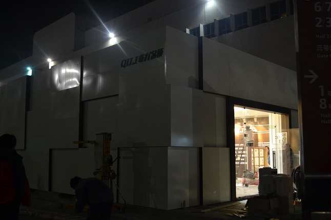 3月12日夜,1號館-1H01燈火通明,一群熱血青年正在拼搏奮斗。為即將到來的13日正式開展,展館搭建,產品出樣,軟裝布置等等,所有的一切,就在今夜完成。