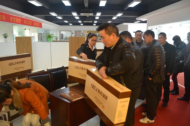 直供專車抵達奇力總部后,業(yè)主朋友們就迫不及待得趕往公司展廳參觀。而奇力的工作人員們早已整齊容裝,靜候來賓。引領盛澤朋友們領取豐厚而不菲的禮品后,漫步走進富麗堂皇的美式風尚第二季全新展廳,高貴奢華、精致典雅置身其中。來賓朋友們紛紛掏出手機、相機,記錄下奇力的精美產品與展廳。