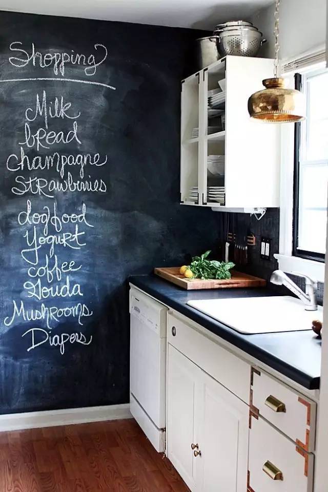 廚房里裝個(gè)黑板墻,不知道是不是玩出新高度的一種,既可以學(xué)習(xí),又可以安利各種菜單。有沒(méi)有覺(jué)得很不錯(cuò)啊,隨手來(lái)個(gè)幾筆,無(wú)論大人小孩都愛(ài)上這里。