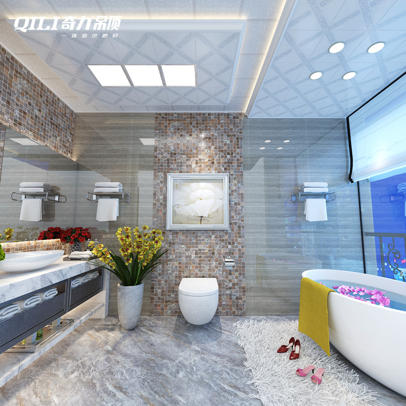 自帶清純的光彩,柔和的燈光將空間點亮,迷人的灰藍色線條交織在一起,有著無法言語的誘惑魔力,伴著清雅舒暢的主調,進入沐浴私享空間。