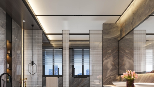 避免落入俗套,去繁為簡,用最簡單的配色,環(huán)保的蜂窩大板,讓浴室空間變得純凈,仿佛可以在這里洗滌心靈,貼近真我!