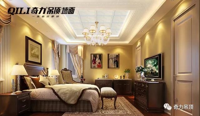 在簡歐風(fēng)格的偌大臥室里,親身感受每一處細(xì)節(jié)之處的用心與精致。看,吊頂上的精美紋理鐫刻著生活的每一次幸福感動。