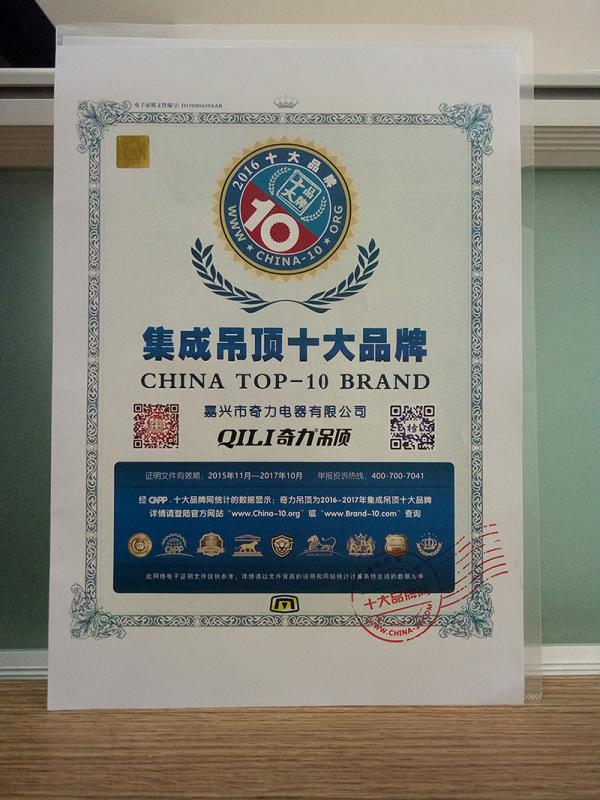 奇力吊頂榮獲“2016年度集成吊頂十大品牌稱號(hào)”